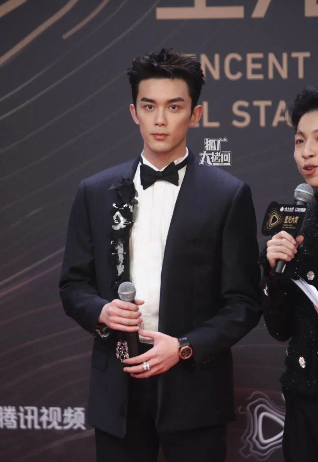 龔俊的黑色絲絨拼接亮片西裝外套,讓他看起來多了幾分魅,感覺像脫了外套就很會扭動身體的交誼舞選手。