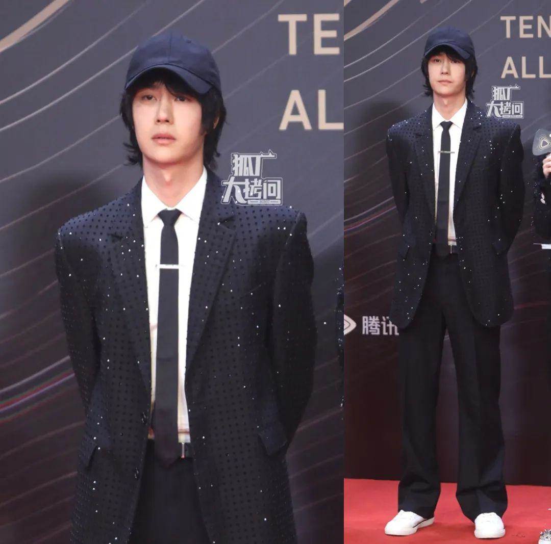 王一博每次的時尚穿搭都很有個性。長發配鴨舌帽遮住了額頭,使得他那高聳入云的山根和鼻梁尤其搶鏡,西裝配球鞋倒是韓國愛豆常見的穿搭,但頭和腳很休閑,身體很正式,整體造型看起來實在是不倫不類。