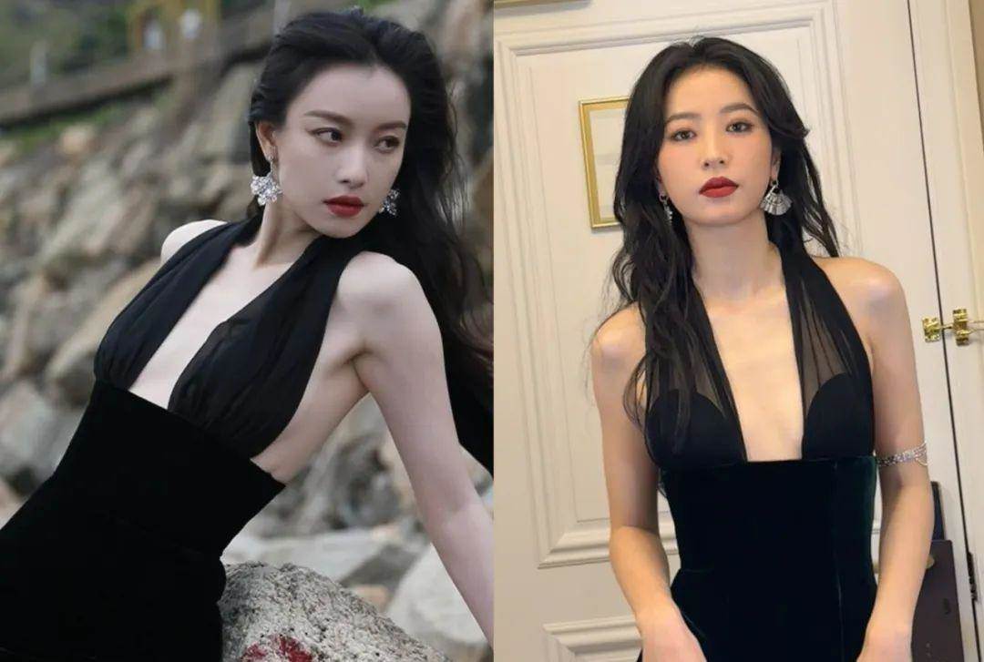 當然了,細看就會發現裙子的綁帶不太一樣,倪妮的是純黑,周雨彤的是透膚色的薄紗。雖然她們撞造型了,但都很美。