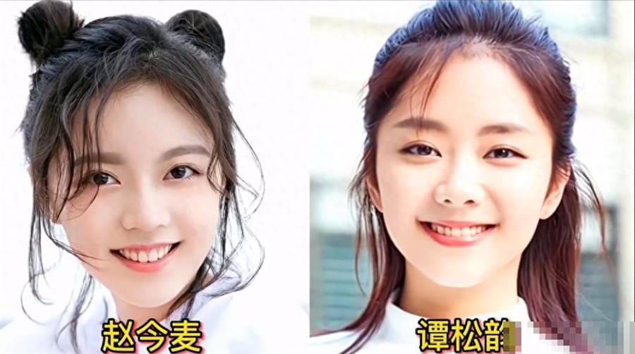 趙今麥和譚松韻都是可愛型的,她們兩個人都有著漂亮的大眼睛雙眼皮,炯炯有神的杏仁眼,而且都十分的愛笑,笑起來的時候,她們都是嘴角上揚,蘋果肌飽滿,眉眼彎彎的樣子,所以從氣質來看,兩個人非常的接近。