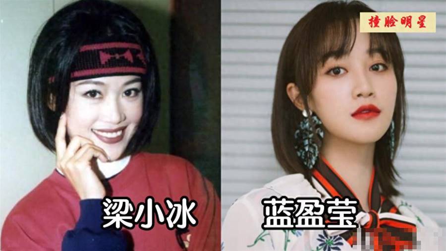 如果看過藍盈瑩自然妝的照片,那麼就不會覺得她與梁小冰相像了,她們二人的相似之處,是在藍盈瑩化了濃妝之后才體現出來的,畢竟她們的臉型和面部的起伏相似之處并不明顯。