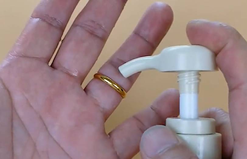 这款洗肤水很润滑,戴上后不会对你的手指造成伤害,只要慢慢的转动,就可以轻易的摘下,你学会了么?