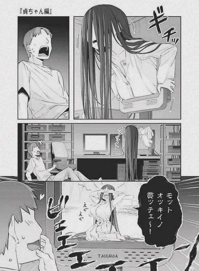 在巫女醬的幫助下,貞子醬終于回到了電視裡。之後,她又斥責了男主,看來在鏡頭移開的這段時間發生了很多事。