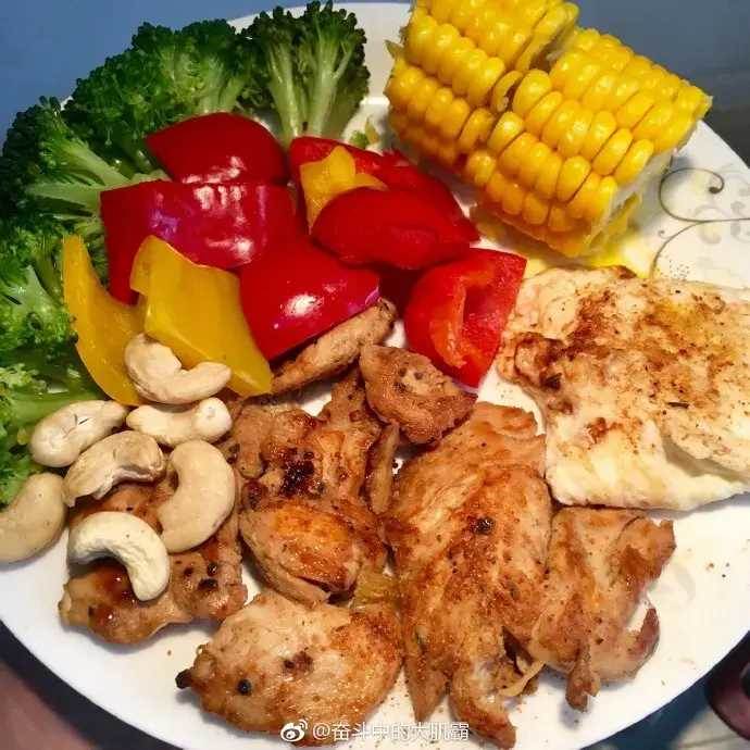 健身餐是肌肉不可缺少的。西蘭花,玉米,雞胸肉,牛肉和西紅柿是他的首選。只有嚴格控制飲食,才能增加健身效果。他每天三餐看起來像這樣: