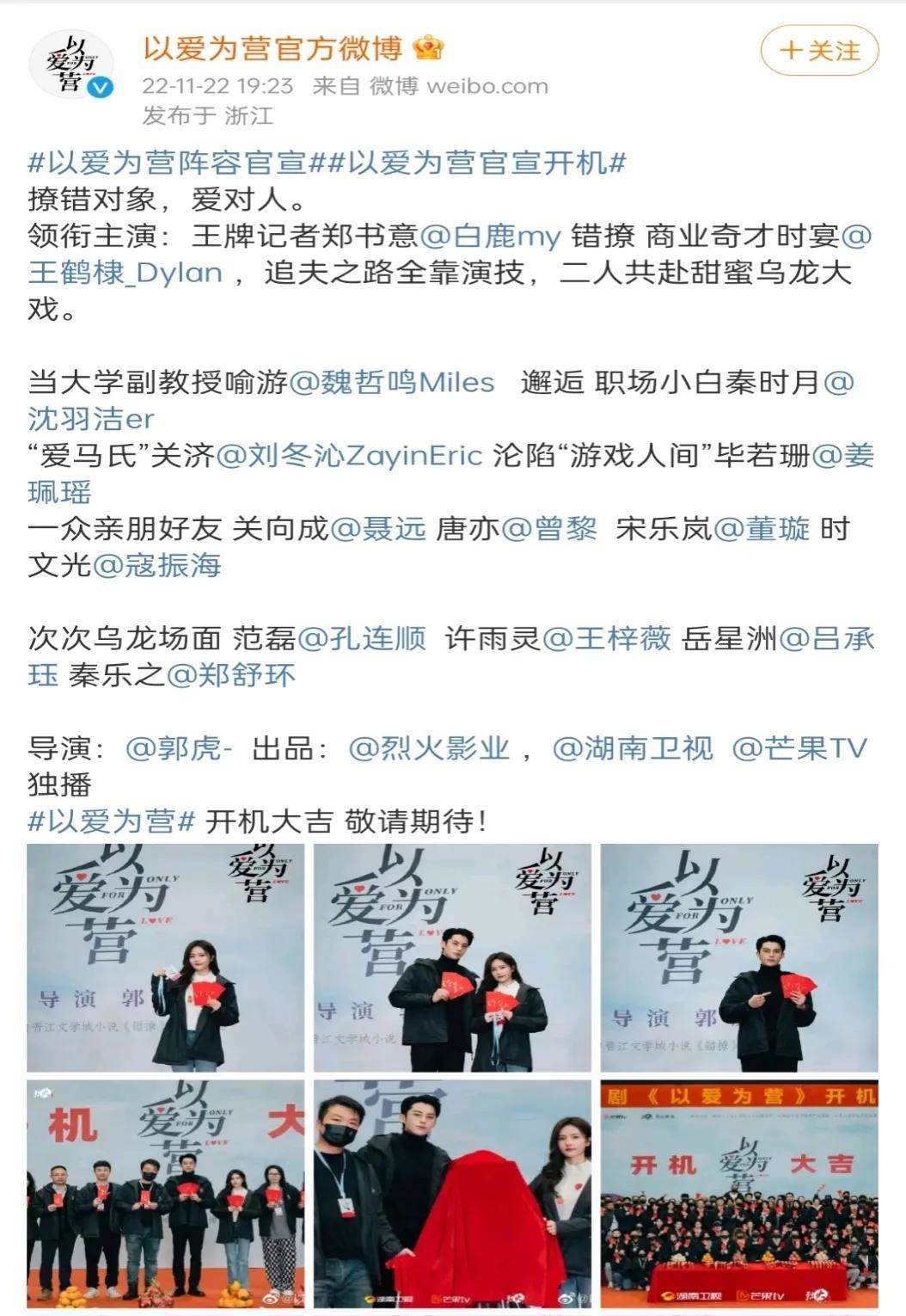 由白鹿王鶴棣主演的《以愛為營》已開機。
