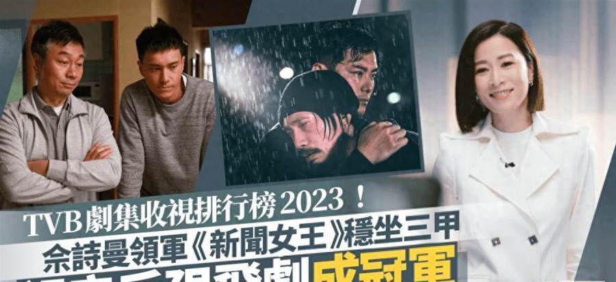 2023年TVB播出的兩線劇集多達24部,以22部于TVB播出的劇集最高收視計算,佘詩曼領軍的話題之作、TVB台慶劇《新聞女王》穩坐三甲,輸給兩部同樣有視帝視后合拍的劇集!